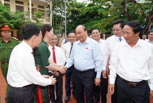 Thủ tướng Nguyễn Xuân Phúc tiếp xúc cử tri An Dương, Hải Phòng. Ảnh VGP/Quang Hiếu |