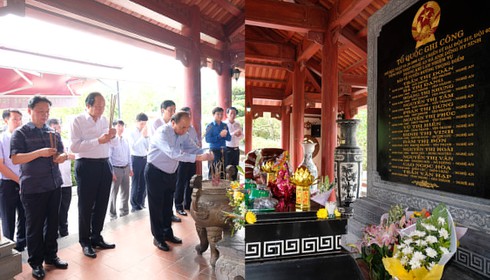 | Thủ tướng và doàn công tác dâng hương tướng nhớ 13 liệt sĩ TNXP tại Khu di tích Truông Bồn. Ảnh: VGP/Quang Hiếu |