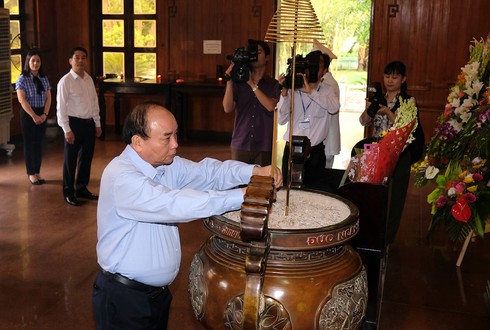 Tại Khu di tích Kim Liên, huyện Nam Đàn, thành kính dâng hoa, dâng hương tưởng nhớ Chủ tịch Hồ Chí Minh, trước anh linh của Người, Thủ tướng Nguyễn Xuân Phúc cùng đoàn công tác bày tỏ sự tri ân sâu sắc công lao vĩ đại của Chủ tịch Hồ Chí Minh, anh hùng giải phóng dân tộc, nhà văn hóa kiệt xuất, lãnh tụ xuất sắc của phong trào công nhân và giải phóng dân tộc.