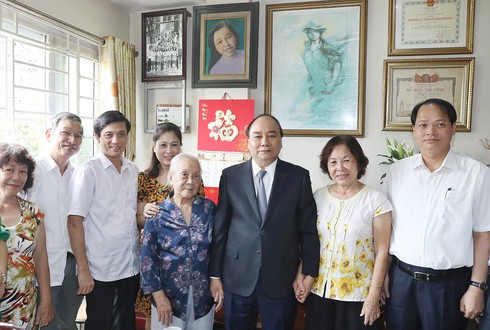Thủ tướng đã đến thăm hỏi, động viên, chúc sức khỏe cụ Vũ Thị Nhàn, 98 tuổi, trú tại phường Minh Khai, quận Hai Bà Trưng, mẹ liệt sĩ Trịnh Đình Khôi. Sinh ra trong gia đình trí thức, liệt sĩ Trịnh Đình Khôi hy sinh anh dũng tại chiến trường Quảng Trị khi mới 19 tuổi. Đến nay, vẫn chưa tìm thấy mộ liệt sĩ.
