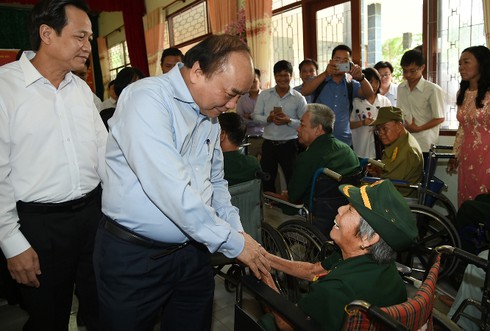 Thủ tướng Nguyễn Xuân Phúc đã đến thăm hỏi, động viên các thương binh, bệnh binh cũng như cán bộ, nhân viên Trung tâm Điều dưỡng thương binh và người có công Long Đất. |