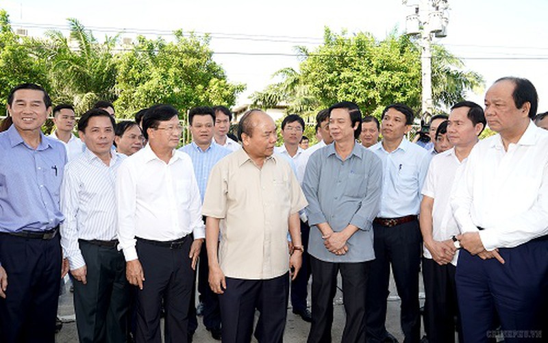 Thủ tướng thị sát tình hình sạt lởtại xã Tân Thành, gò Công Đông, tỉnh Tiền Giang -Ảnh: VGP/Quang Hiếu |