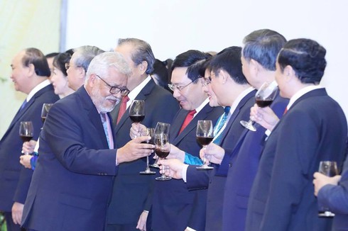 “Tôi đánh giá cao và tin tưởng rằng, các vị Đại sứ, Đại biện và Đại diện các tổ chức quốc tế sẽ tiếp tục phát huy vai trò quan trọng của mình, đóng góp nhiều hơn nữa vào việc thúc đẩy quan hệ hữu nghị, hợp tác giữa Việt Nam và bạn bè, đối tác khắp năm châu bốn biển”, Thủ tướng nói.