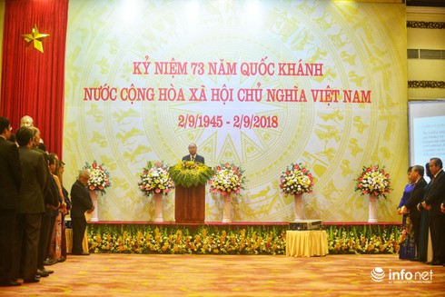 Thay mặt Đảng, Nhà nước, Chính phủ và Nhân dân Việt Nam, Thủ tướng nhiệt liệt chào mừng các “đồng chí, quý vị và các bạn tới dự chiêu đãi kỷ niệm 73 năm Quốc khánh nước Cộng hòa xã hội chủ nghĩa Việt Nam”.