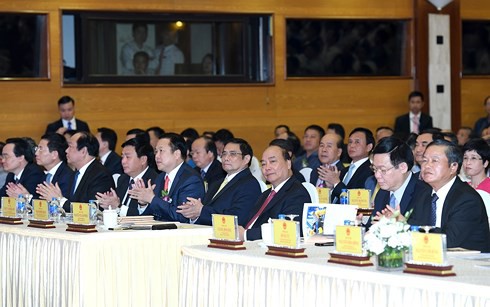 Thủ tướng Nguyễn Xuân Phúc, Phó Thủ tướng Vương Đình Huệ cùng các đại biểu dự buổi lễ. |