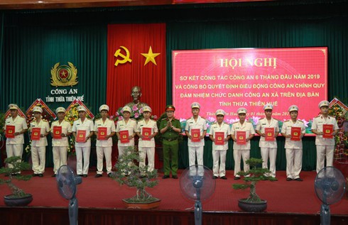 Ngày 1/7, Công an tỉnh Thừa Thiên Huế tổ chức hội nghị Sơ kết công tác công an 6 tháng đầu năm 2019 và công bố quyết định điều động công an chính quy đảm nhiệm các chức danh Công an xã trên địa bàn tỉnh Thừa Thiên Huế.