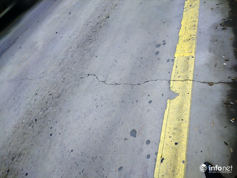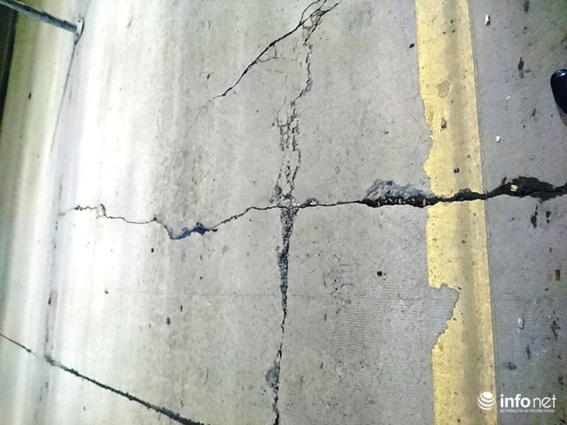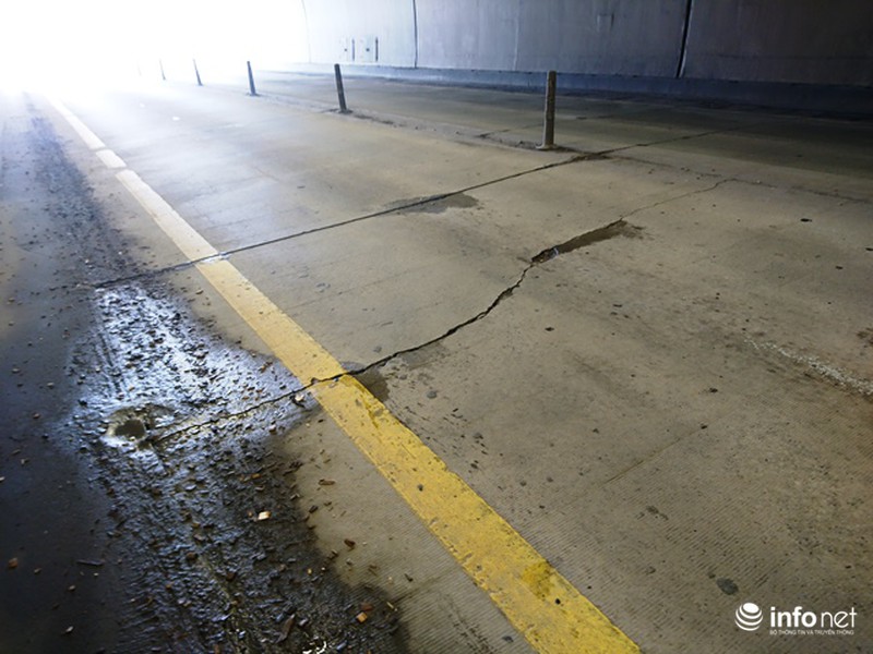 Nứt kéo dài hết mặt đường trong hầm. |