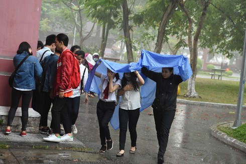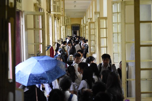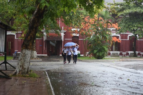 Ghi nhận của PV tại các trường trung tâm TP.Huế, do trời mưa giông lớn và kéo dài vào đầu giờ chiều nên nhiều thí sinh gặp khó khăn khi di chuyển đến các điểm thi.