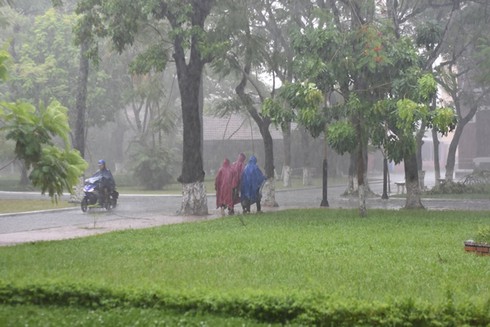 Mưa lớn gây khó khăn cho nhiều thí sinh tại các địa điểm thi ở trung tâm TP.Huế. |