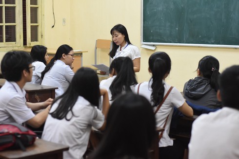 Cán bộ coi thi hướng dẫn các thí sinh sơ đồ chỗ ngồi. |