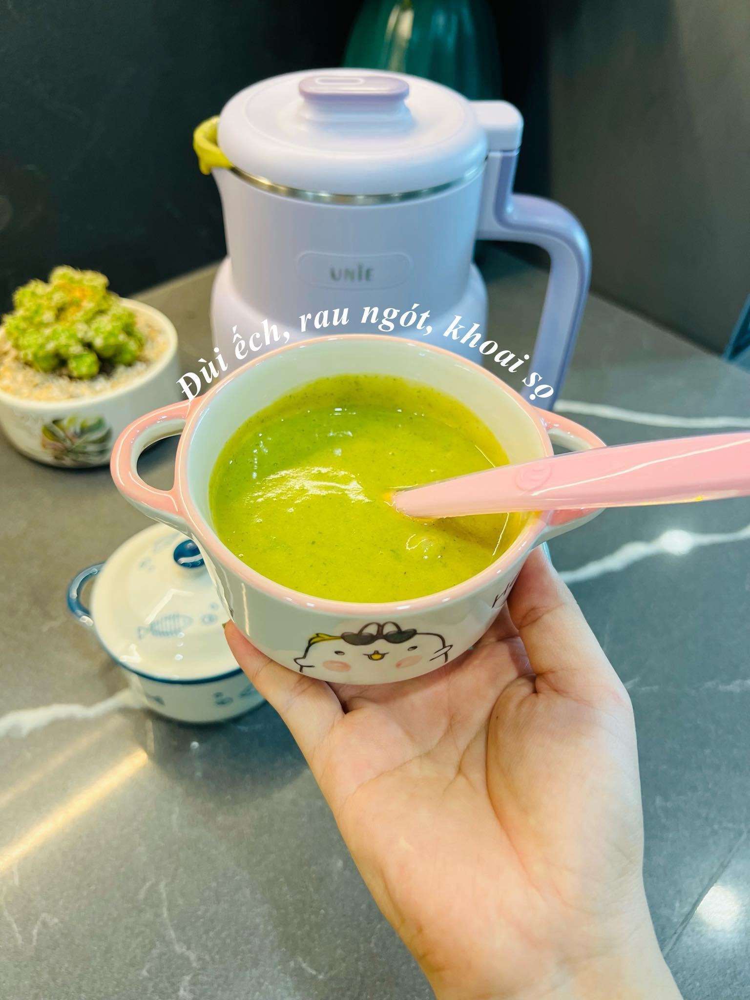 “Mới đầu khi làm quen với nguyên liệu mới thì mình cho con ăn ít để thăm dò phản ứng của bé. Nguyên liệu nấu đồ ăn dặm mình luôn ưu tiên đồ sạch, tươi và người lớn ăn gì thì lấy một chút để nấu cho con vừa nhanh lại vừa tiện”, chị Hòa nói.