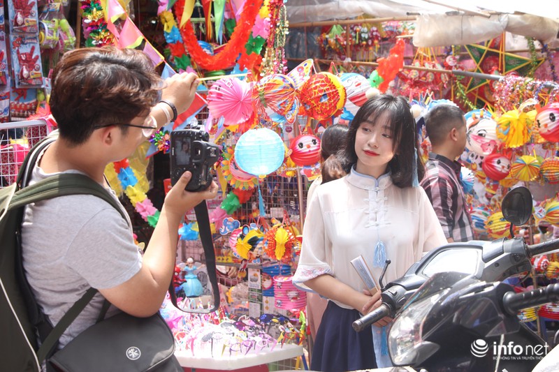 Nhiều bạn trẻ tranh thủ đến phố Hàng Mã để chụp bộ ảnh trung thu dịp này... |