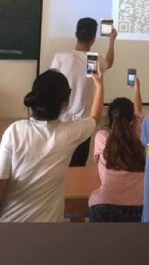 Hình ảnh sinh viên điểm danh bằng mã QR được chia sẻ trên mạng xã hội. |