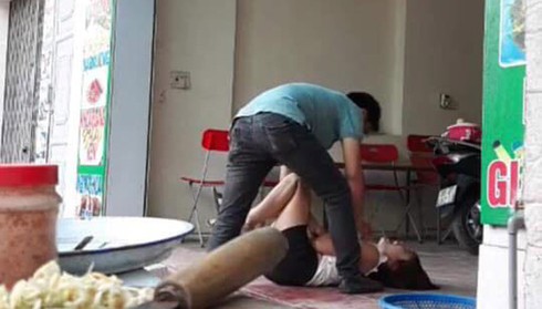Hình ảnh được cho là người chồng đánh vợ dã man ngay trước cửa nhà. |