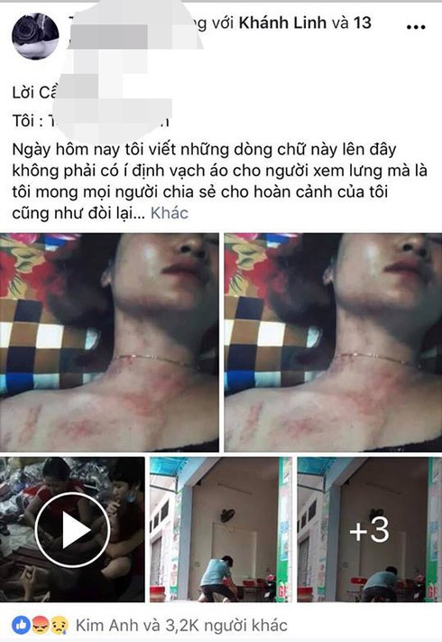 Đêm 22/6, sau trận đòn đau của người chồng, Loan A. đã chia sẻ lên mạng, cầu cứu sự giúp đỡ của mọi người với nội dung: Ngày hôm nay tôi viết những dòng chữ này lên đây không phải có ý định vạch áo cho người xem lưng mà là tôi mong mọi người chia sẻ cho hoàn cảnh của tôi cũng như đòi lại công bằng giúp tôi.