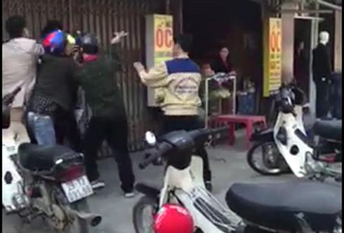 Quan sát 3 đoạn clip phản ánh vụ việc trên các trang mạng xã hội, PV nhận thấy không có bất cứ người nào mặc quân phục của nghành Công an, chỉ thấy một nhóm người đánh nhau…. Trong số các đoạn clip này, có một nam thanh niên nghi bị đánh chảy máu đầu luôn miệng nói: Công an đánh người!