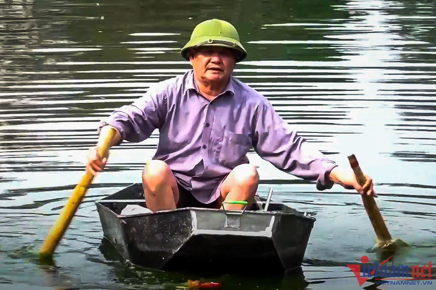 Thượng tá công an 74 tuổi mua thuyền vớt rác trên hồ ở Hải Dương