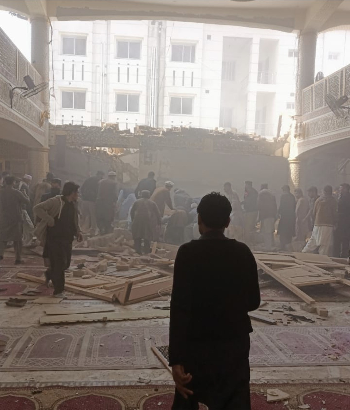 Kẻ tấn công tự sát đã kích nổ chiếc áo vest chứa bom khi hơn 200 tín đồ đang cầu nguyện bên trong hoặc hướng về thánh đường để cầu nguyện. Khu phức hợp thánh đường - trụ sở cảnh sát thành phố, nằm ở khu vực được bảo đảm an ninh chặt chẽ tại Peshawar và hiện chưa rõ tại sao kẻ đánh bom có thể xâm nhập vào sâu trong khu vực này mà không bị phát hiện.