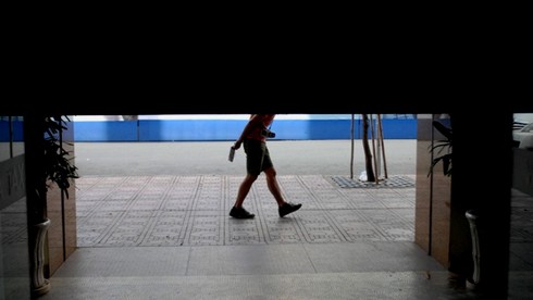Đúng 14h các cánh cửa của khu thương xá từ từ đóng lại. Đây là khoảng khắc khiến nhiều người chứng kiến rất xúc động. Trong ảnh là một người đi bộ qua cửa thương xá trong khi cánh cửa từ từ hạ xuống.