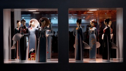 Các bức tượng bằng gốm trên một kệ trưng bày đang chờ xếp vào thùng để chuyển đi.