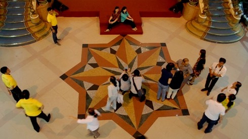 Một vị khách du lịch người Pháp đang chụp lại những hình ảnh phía ngoài khu thương xá.