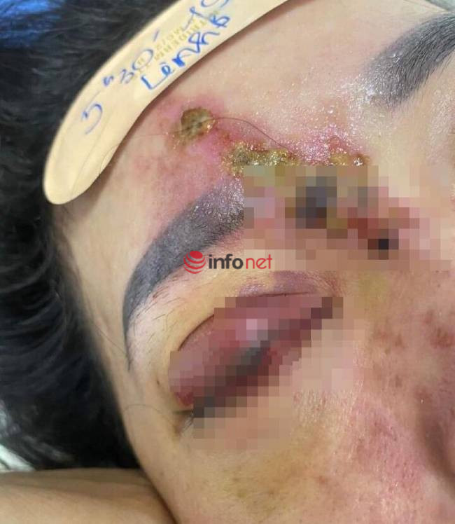 Tuy nhiên, chị T.T.V đã được người nhà đưa vào cấp cứu tại bệnh viện Đa khoa Đà Nẵng. Bác sĩ chẩn đoán, chị V bị tắc mạch vùng mắt phải do tiêm filler chất làm đầy (H.A gel) biến chứng mất thị lực mắt phải; liệt dây TK II,III, IV, VI/viêm hoại tử mô quanh mắt.