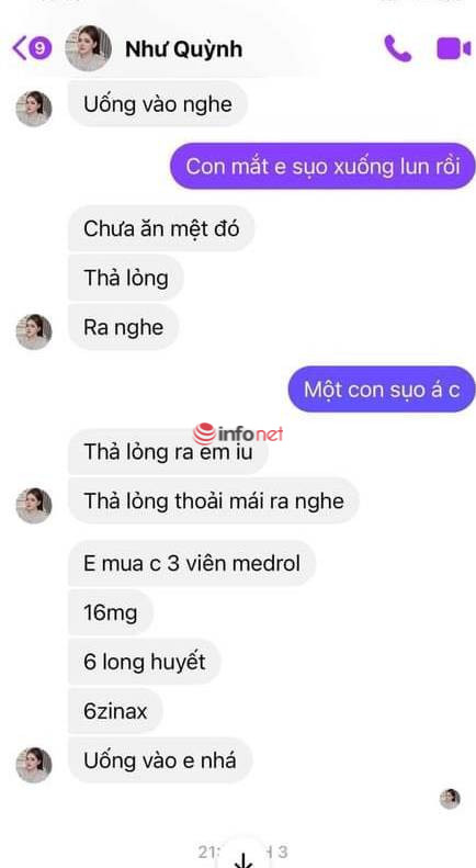 Thậm chí bà chủ spa này còn “kê đơn” luôn cho chị V “em mua viên medrol 16mg, 6 long huyết, 6 zinax uống”.