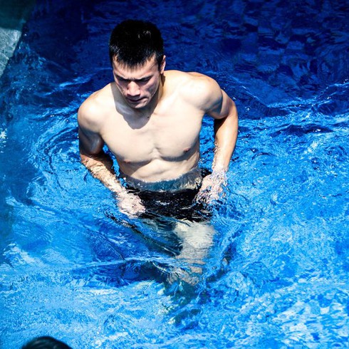 Chỉ với những hình ảnh tập luyện dưới nước như này, khán giả mới biết cầu thủ xuất sắc Quang Hải có một hình xăm lớn trên bả vai vô cùng manly. |