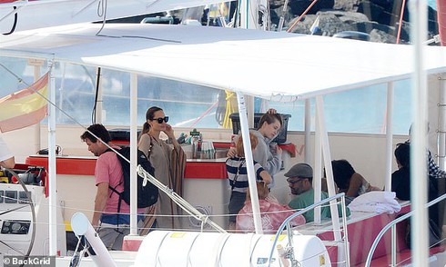 Nữ minh tinh Hollywood ăn mặc giản dị đưa con đi chơi trên du thuyền ngoài đảo |