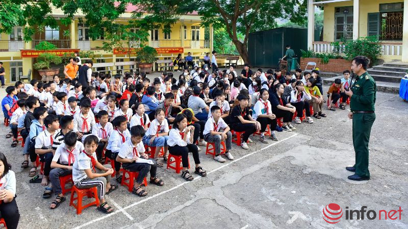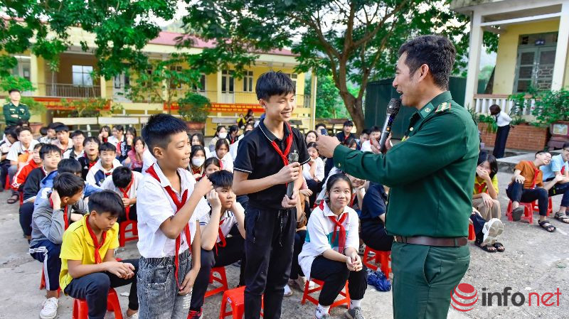 Giảng dạy tiết học này chính là những cán bộ đồn Biên phòng, người được các em học sinh yêu mến gọi là "thầy giáo quân hàm xanh".