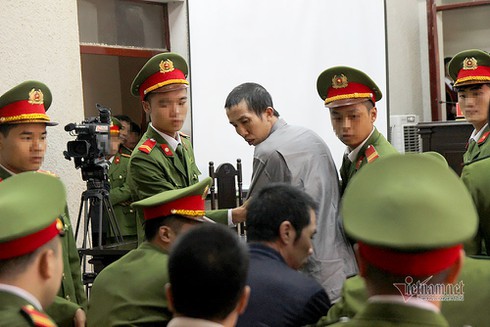 | Bùi Văn Công bị áp giải tới phiên tòa xét xử vụ án buôn bán trái phép chất ma túy chiều 27/11. (Ảnh: Đoàn Bổng) |