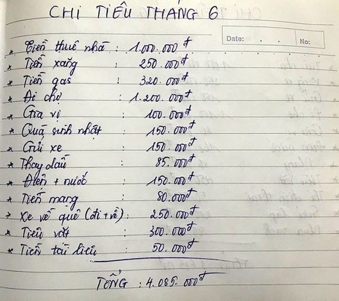Hà vẫn thực hiện việc ghi chép chi tiêu đều đặn. Nhưng dù co kéo thế nào, số tiền mỗi tháng vẫn dao động ở mức 3,5 – 4 triệu đồng.