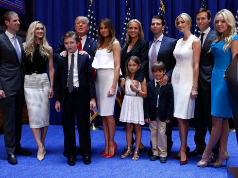 Gia đình ông Trump với người vợ thứ 3 Melania cùng 5 người con và các cháu. |