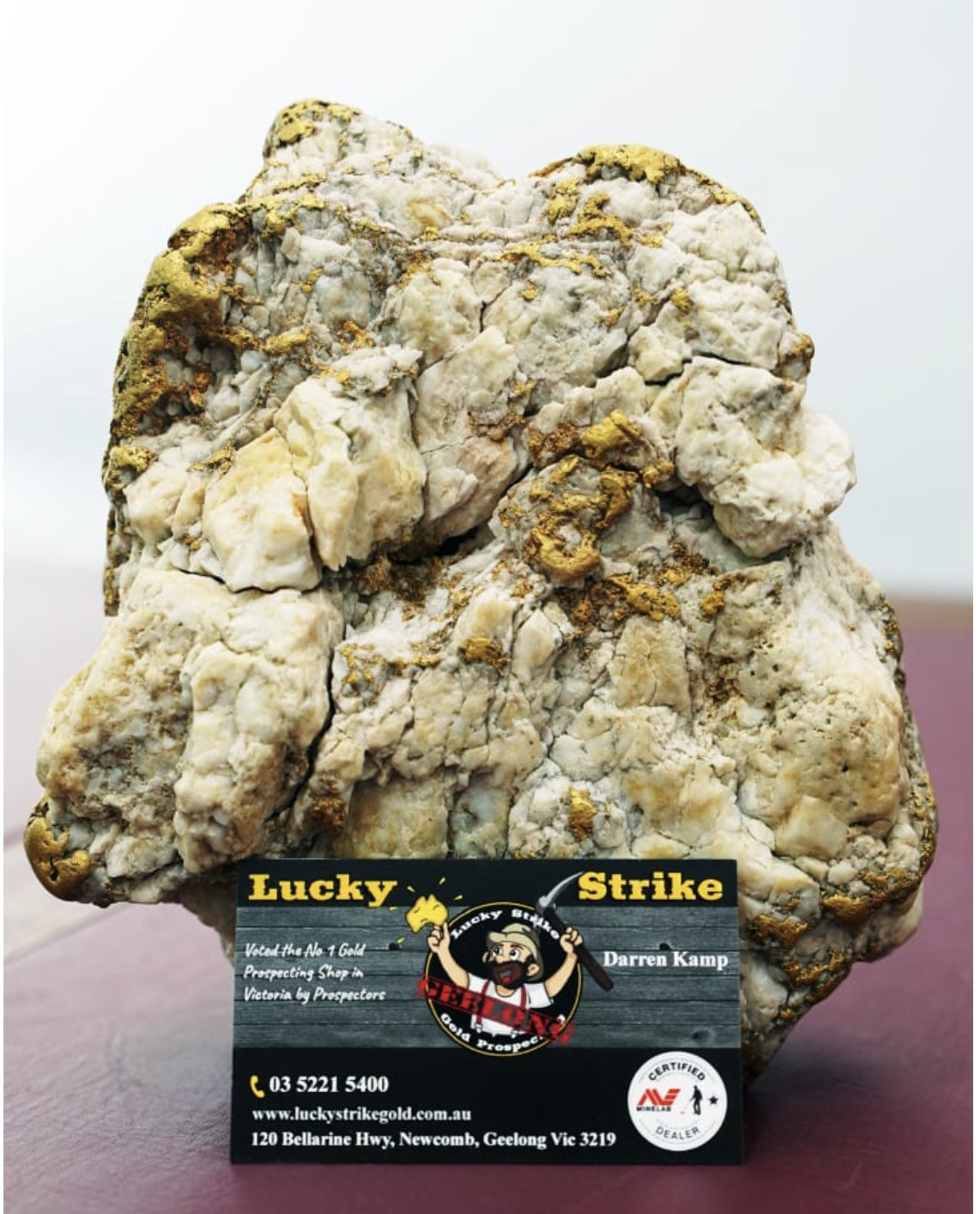Khi người tìm vàng mang những gì tìm được tới cửa hàng Lucky Strike Gold của Darren Kamp tại Geelong, anh ta hỏi: "Ông có nghĩ nó trị giá 10.000 AUD không?". Kamp cho biết, thường gặp nhiều người mang "vàng lừa" (một loại khoáng sản giống vàng nhưng không có giá trị) tới cửa hàng, nhưng ngay khi chạm vào tảng quặng vàng đó anh đã định giá nó là 240.000 AUD - tương đương 160.000 USD. Khi đó, vị khách mới cho hay: "Đó mới chỉ là nửa tảng, nửa còn lại vẫn ở nhà".
