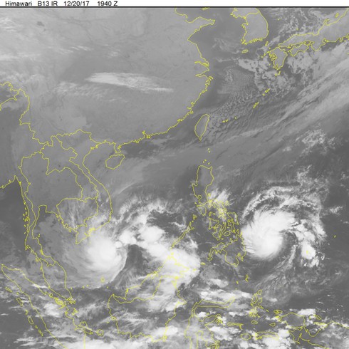 Ngoài ra, sáng sớm nay một áp thấp nhiệt đới khác ở vùng biển ngoài khơi phía Đông miền Nam Phi-líp-pin đã mạnh lên thành bão và có tên quốc tế là Tembin. Bão Tembin có xu hướng di chuyển nhanh về hướng Tây với tốc độ 20-25km/h và có diễn biến phức tạp. Cần theo dõi thông tin chính thức về cơn bão này trong chiều nay (21/12).