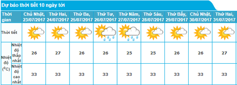 Dưới đây là dự báo thời tiết Hà Nội 10 ngày tới: