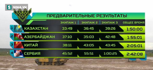 *Trong khi đó, ngày 10/8, lượt trận bán kết đầu tiên ở Bảng 1 trong khuôn khổ giải đấu xe tăng quốc tế Tank Biathlon 2019 đã diễn ra quyết liệt với sự tham gia của 4 đội gồm Trung Quốc, Kazakhstan, Azerbaijan và Serbia.
