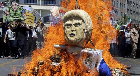 Người dân Iran phản đối Tổng thống Mỹ Donald Trump trong một cuộc biểu tình. |