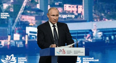 Tổng thống Nga Vladimir Putin phát biểu tại EEF. Ảnh: Sputnik |