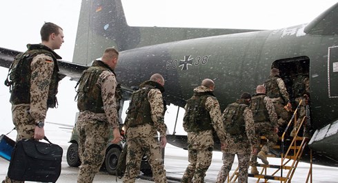 Binh lính Đức chuẩn bị cho một cuộc tập trận. |