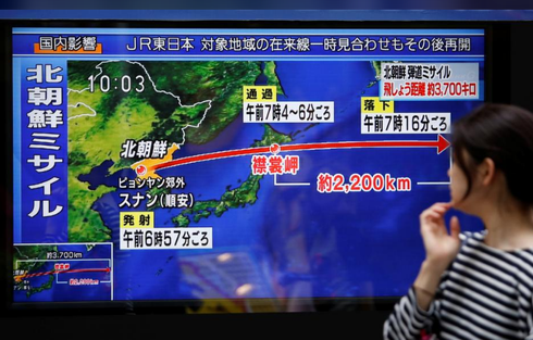* Khoảng 5h sáng 15/9 (giờ Việt Nam), đồng loạt các trang báo quốc tế như Reuters, CNN, BBC, trang tin tức North Korea News đưa tin, quân đội Hàn Quốc đã xác nhận, Triều Tiên vừa tiến hành phóng tên lửa về phía biển Nhật Bản, bay qua khu vực đảo Hokkaido. NHK cho hay quả tên lửa này đã rơi xuống khu vực Thái Bình Dương, cách bờ biển Hokkaido 2.000 km về phía đông.
