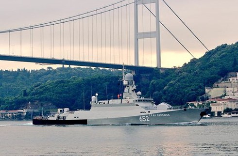 Tàu hộ vệ trang bị tên lửa hành trình Grad Sviyazhsk 652 (c-021) của hải quân Nga được cho đi qua eo biểnBosphorous vào cuối tuần trước trên hành trình tớicảng Tartus. |