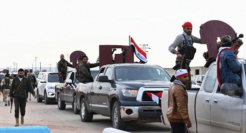 Đoàn xe của các lực lượng vũ trang thân chính phủ Syria tại Afrin. |