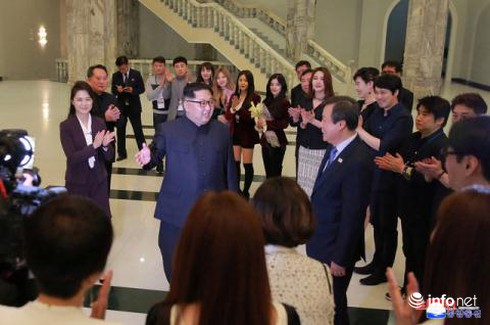 Nhà lãnh đạo Triều Tiên Kim Jong-un giao lưu cùng các nghệ sĩ Hàn Quốc tại Bình Nhưỡng. |