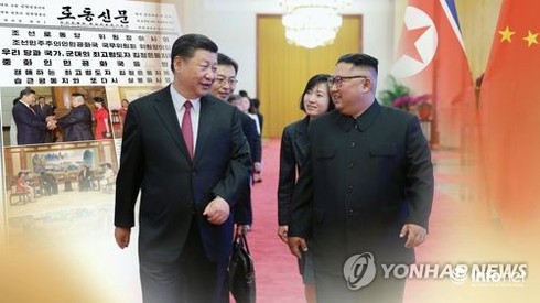 Nhà lãnh đạo Triều Tiên Kim Jong-un (bên phải) đã thực hiện chuyến thăm tới Trung Quốc lần thứ 3 hôm 19/6. |