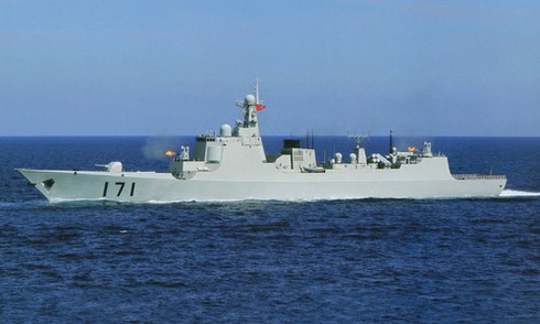 Tàu khu trục Type-052C tập trận bắn đạn thật năm 2013. |