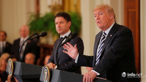 Tổng thống Mỹ Donald Trump cùngThủ tướng Italy Giuseppe Conti tiến hành họp báo chung hôm 30/7. |
