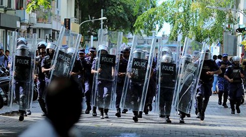 Cảnh sát chặn đường quanh Tòa án Tối cao Maldives. |