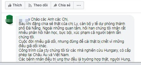 Tuy nhiên, theo chuyên gia những câu chuyện chia sẻ như trên rất nguy hiểm, nếu như bệnh nhân ung thư điều trị theo.
