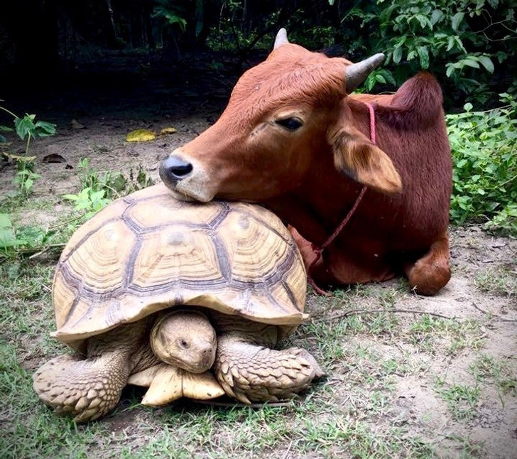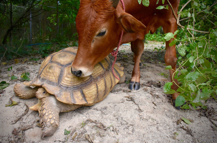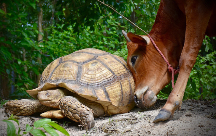 Tình bạn đặc biệt giữa bò khuyết tật và rùa khổng lồ